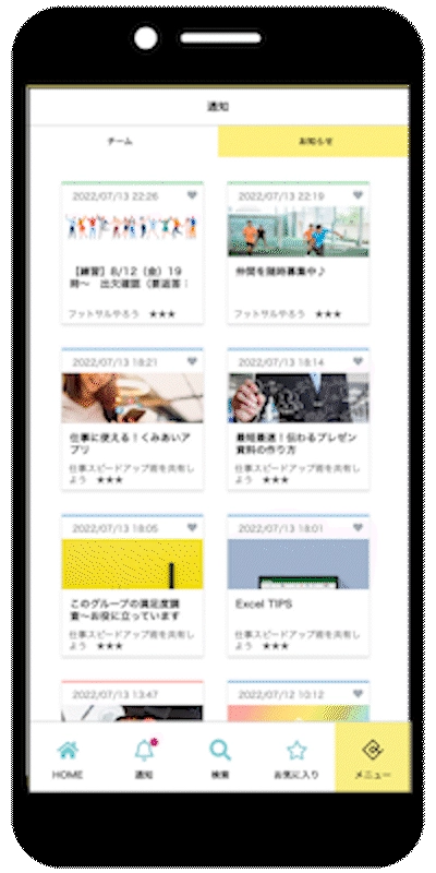 組合からの大事なお知らせや、仲間の声がアプリに届くことで、仲間とのつながりをより身近に感じることができます。