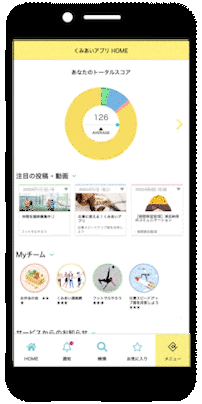 くみあいアプリには、組合活動と組合員をつなぐ「チーム機能」があります。